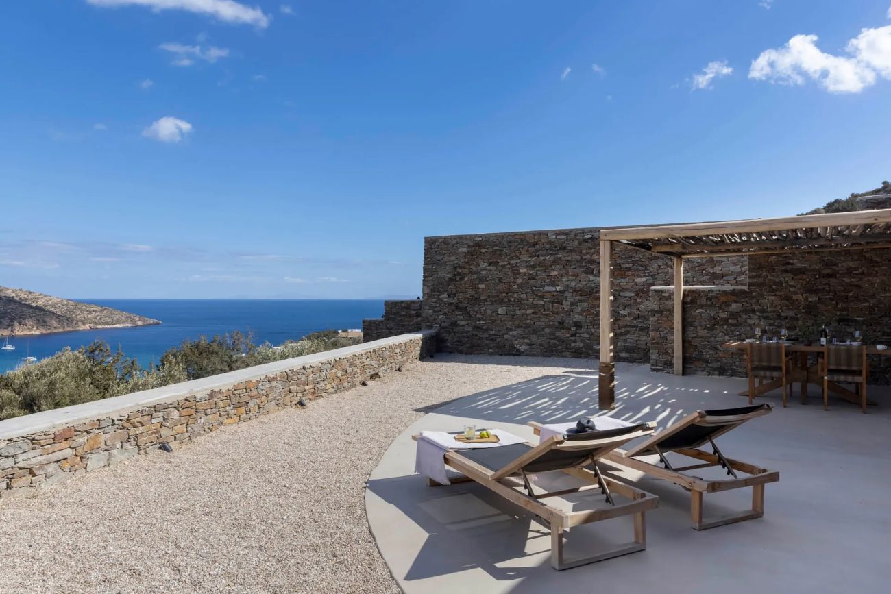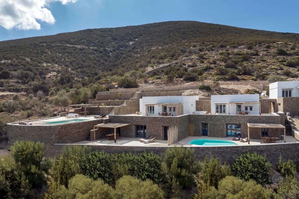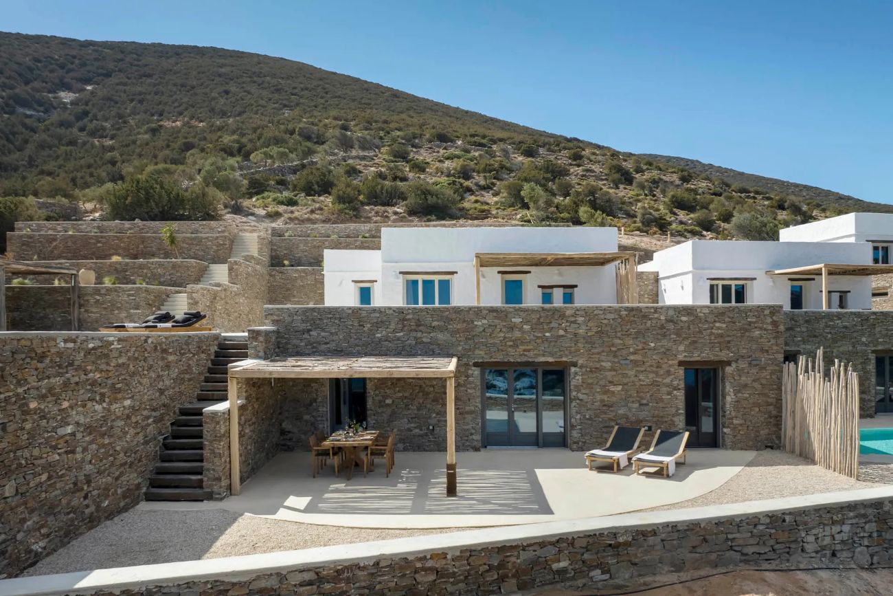 Piccolo complesso di ville di nuova costruzione situato sulla collina dominante la spiaggia di Platy Gialos. Disposa de: - Villa per 4 persone, con 2 camere da letto matrimoniali, 2 bagni. terrazza panoramica - Villa per 8 persone, con 4 camere da letto, 3 bagni. terrazza panoramica con piscina privata.