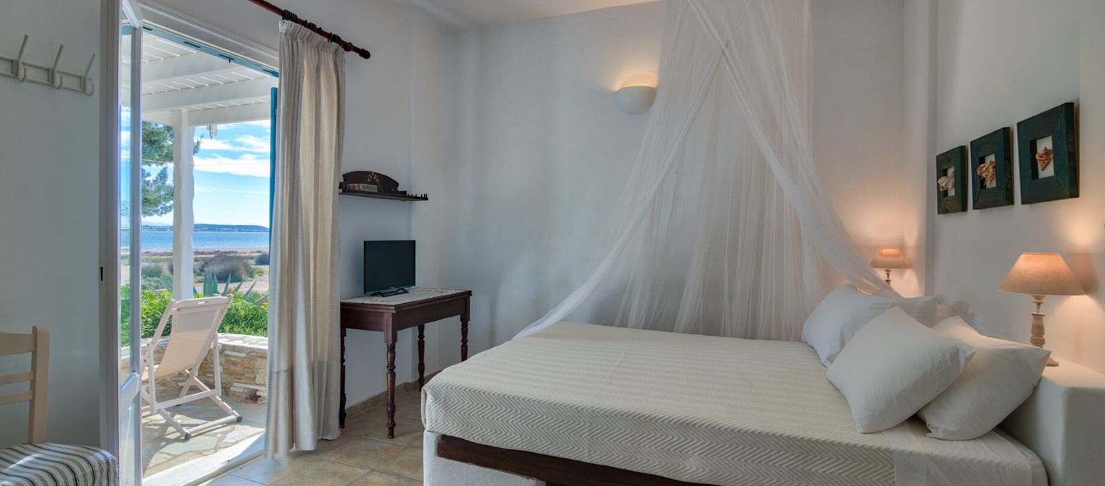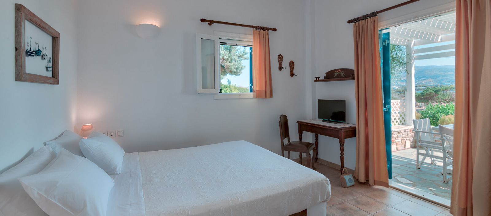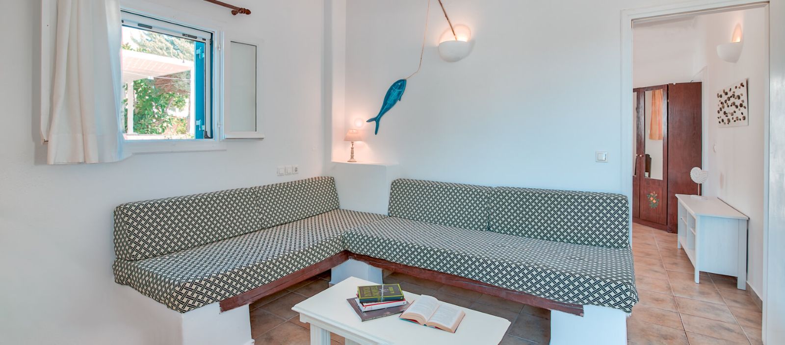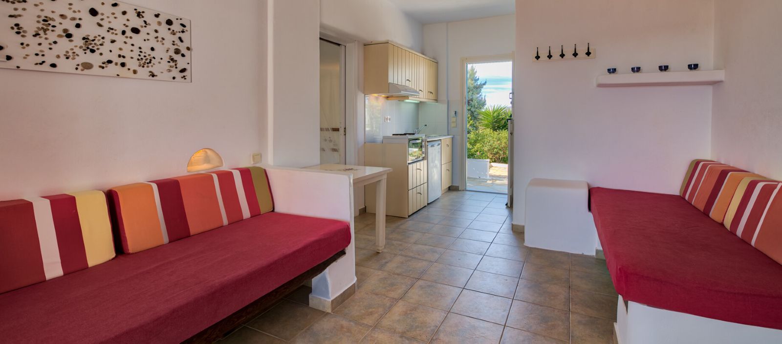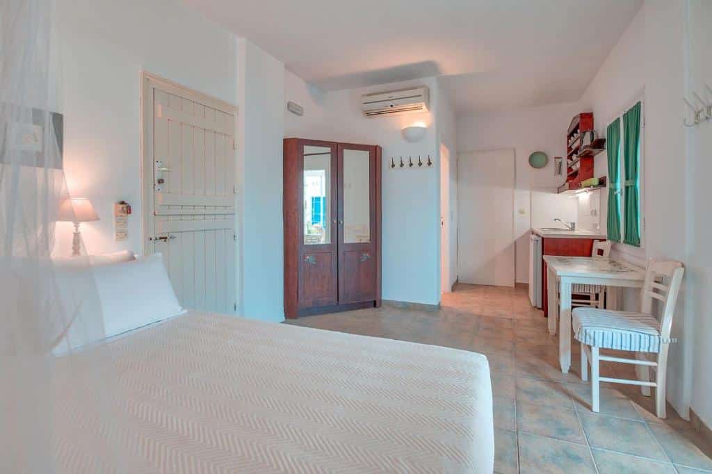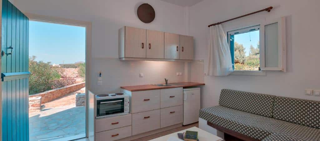 Grazioso complesso affacciato sul mare e situato a pochi passi dalla spiaggia di Agios Spyridon e dal paese principale. It offers: - Studios monolocali con un letto matrimoniale o due letti singoli, alcuni con divano letto singolo supplementare; - Appartamenti bilocali composti da soggiorno con due letti singoli e camera da letto matrimoniale.